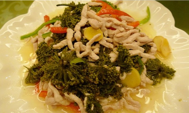10、三七花炒肉:取20克花朵,用温水泡10—20分钟,鲜肉片炒半熟,在一起炒。