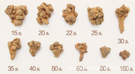 三七的等级区分在国家标准里面是用头数来区分的,头数是指每500克三七中三七的个数(相对)。20头即500克三七中有三七20个左右。一般正常情况来说,头数越少,三七的个头越大、质量越好;头数越多,则质量稍差一些。