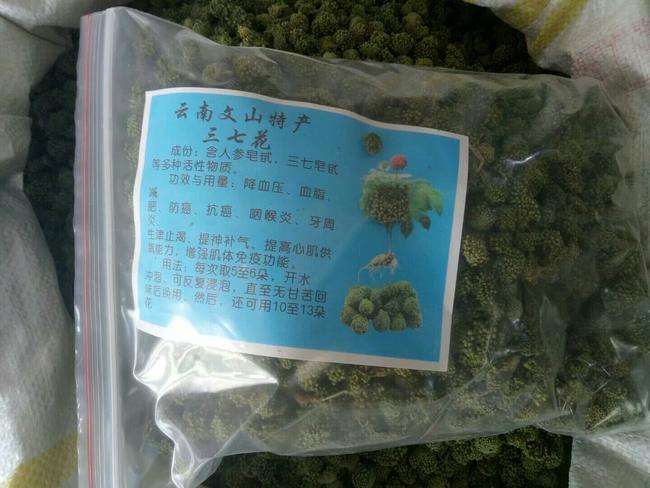 3、如果三七头干度不够,前期需要定期把仓库中的三七头搬到外面晾晒,直到干度足干为止;其次,如果所在的环境、地点不同还要注意防虫、防鼠等(一般在入库前或者定期的给三七头表面喷洒防虫药),文山三七毛根和大根(筋条)存放也是一样的!如果是客户和外地的三七批发商面对的是洗过三七头,并且三七头的量比较小,需要经常食用和流通零卖。一般客户可以用密封袋封装(量是1-5斤内),然后放到家中的阴凉、干燥处;密封的前提是客户收到的三七头需足干(干度不够需要自己晾晒加工成足干才不会引起三七变质);三七批发商和中间商量比较大些,推荐收到货后用大纸箱存放(大纸箱有吸水防潮功能),可封箱、也可不封箱主要取决于商家日后零售时的便捷。